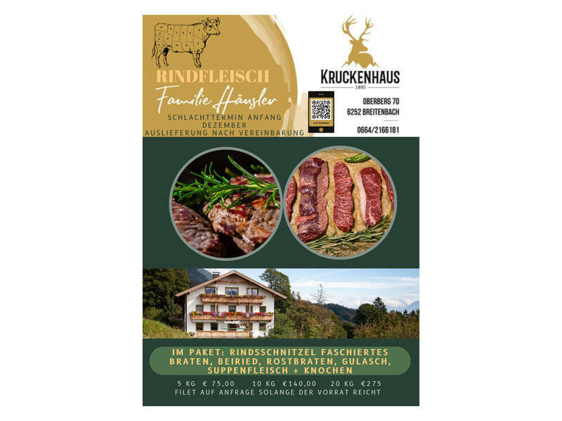 Unsere Kruckenhauser Weiderinder haben ein stressfreies Leben und eine natürliche Ernährung. Die Weidehaltung bietet den Tieren mehr Bewegungsfreiheit, was zu einer höheren Muskelentwicklung führt. Das Fleisch ist somit saftiger und geschmackvoller.